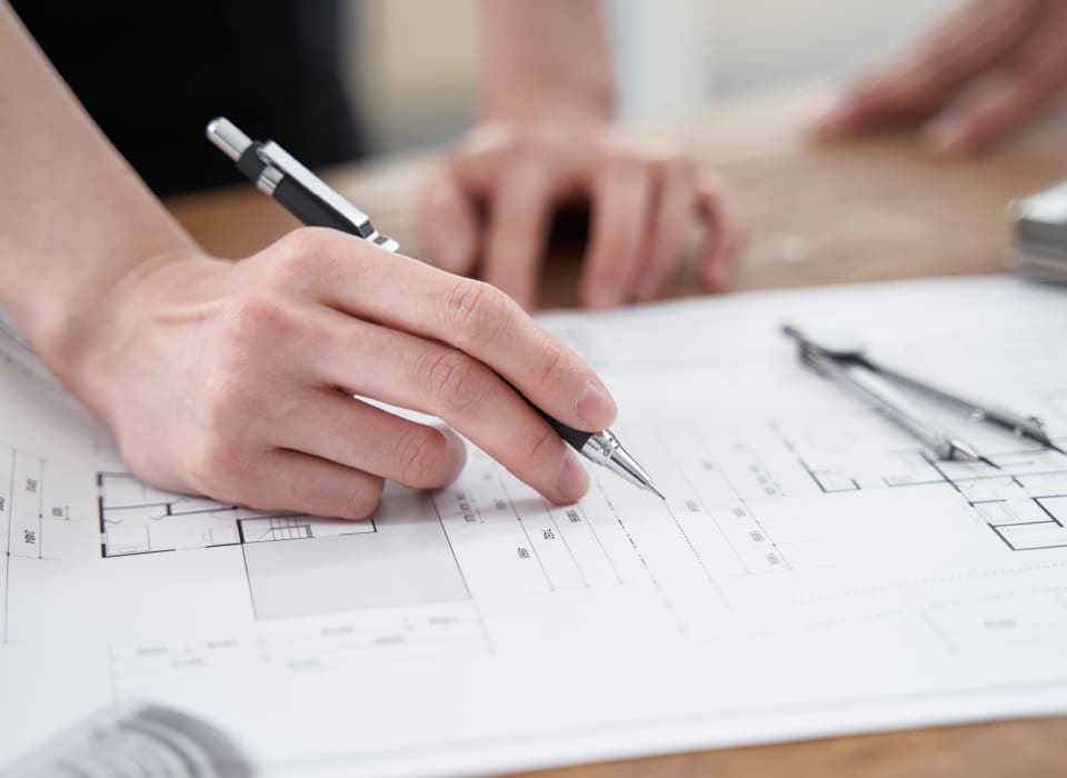 法規、構造、環境、コストなどお客さまに代わって考え、具体的な形で図面化し、満足のいく建物の竣工をさせていただきます。